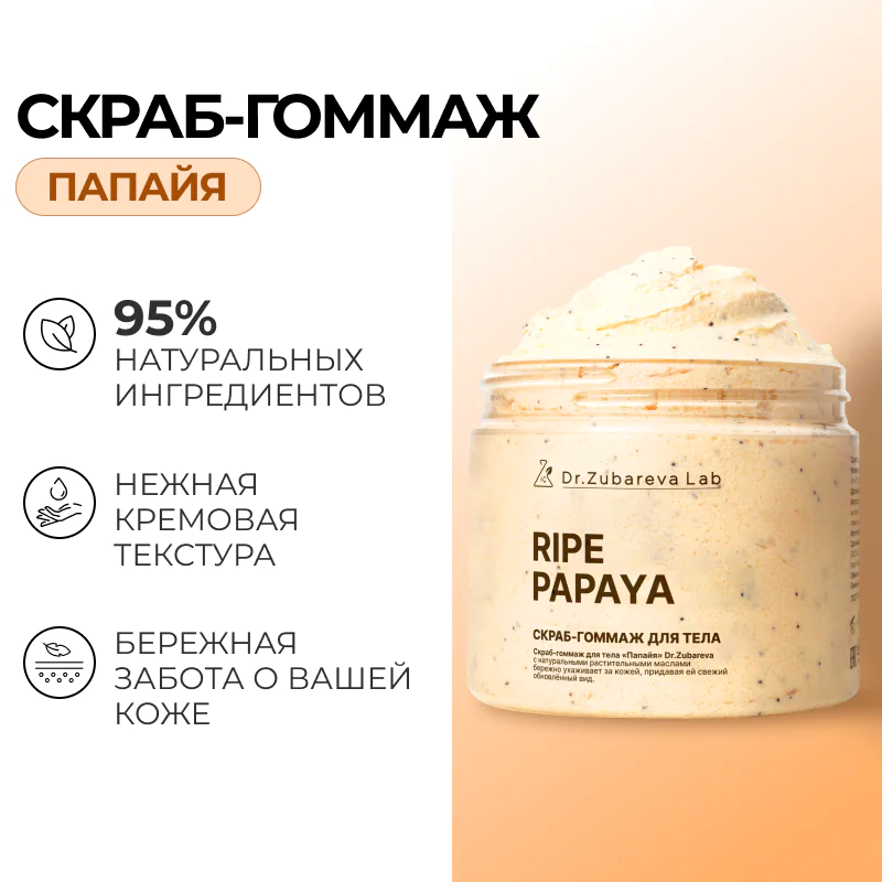 Выбирайте скраб-гоммаж «Папайя» Dr. Zubareva Lab и делайте подарок себе, маме или подруге.