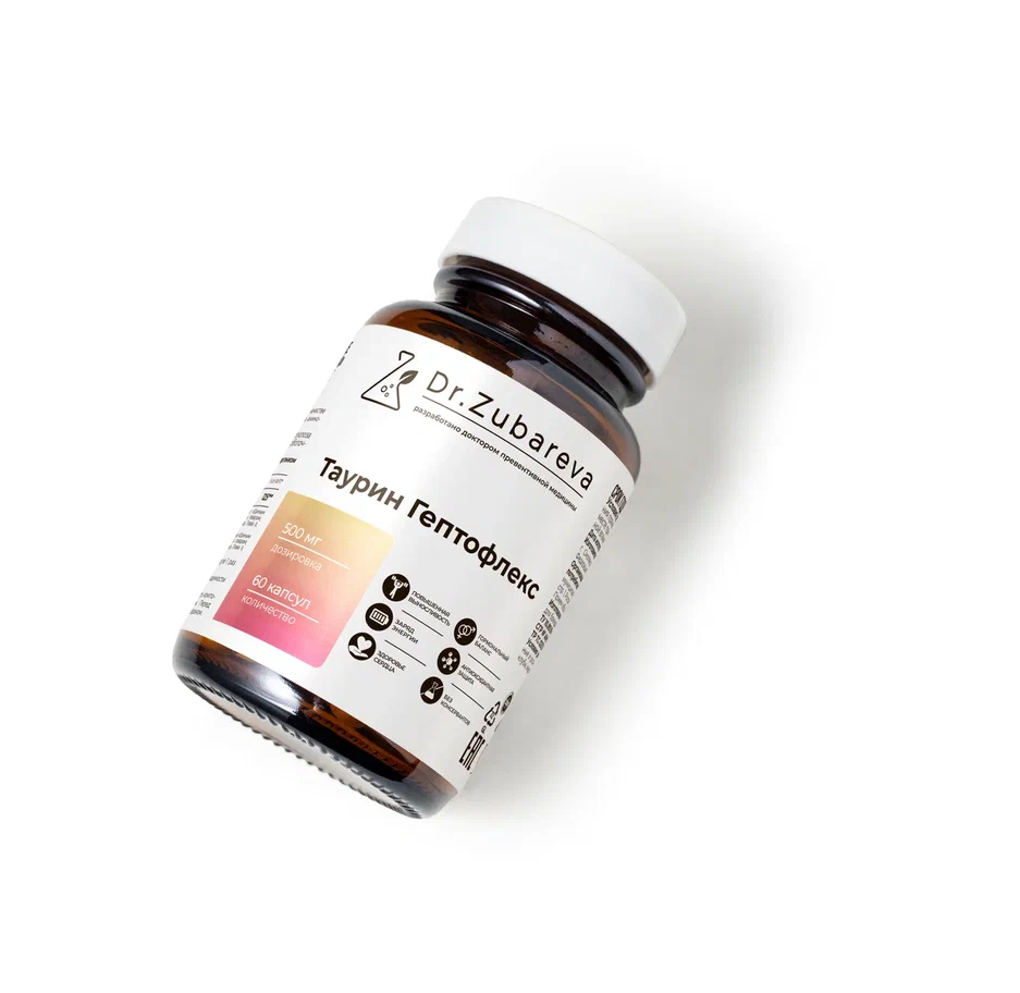 - Таурин Гептофлекс повысит уровень энергии и выносливости, позаботится о сердце и сосудах.