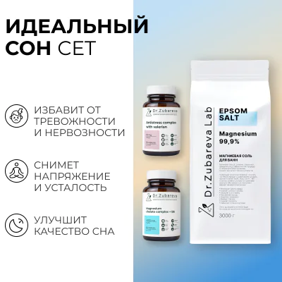 Хватит страдать от недосыпа и последствий хронической бессонницы. Возьмите свой сон под контроль с новым уникальным сетом от Dr.Zubareva.