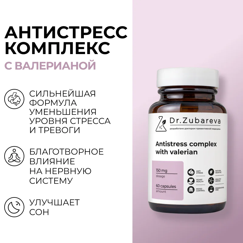 Ответ: Да, комплекс «Антистресс с валерианой» Dr. Zubareva можно использовать для нормализации психоэмоционального состояния и борьбы со стрессом. Он содержит натуральные ингредиенты, такие как экстракт корней валерианы и экстракт травы пустырника, которые оказывают мягкое успокаивающее действие на нервную систему, помогают при бессоннице и улучшают когнитивные функции.