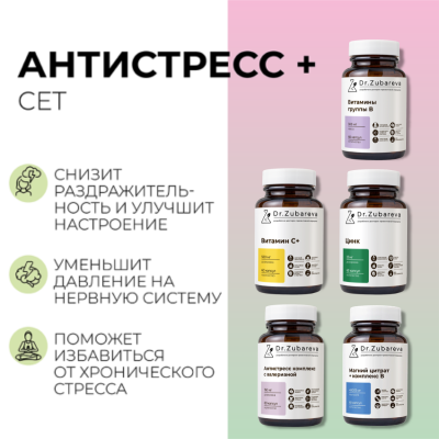 Здоровая нервная система и правильный рацион питания — два основных способа предотвратить стресс и его негативные последствия на организм. Поэтому приём нутрицевтиков из сета «Антистресс +» от Dr.Zubareva — прекрасный способ профилактики хронического стресса и поддержки организма в сложных ситуациях.